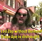 This episode’s better than the titillating touch of a doting Doberman’s tongue (if you know what we mean, and we’re sure you do!)…You’ll meet Grape Ape, a hippie burnout who survived an atomic blast to become the Magilla Gorilla of rock and roll and Spokesperson for a Lost Generation, as he expounds on Led Zeppelin and proves that rust never sleeps, it creeps…Do the Scoliosis Dance… Learn good Posture Habits… Dip into the tasty hip-hop aural treats of Japanese musical duo Cibo Matto… Surrender to local heart-throbs The Put-Outs in their “Sky Is Falling” music video (shot at Baltimore’s own Reptilian Records… add your lungs to the Jon Spencer Blues Explosion’s “Wail” (groovy music vid directed by none other than Weird Al Yankovic)… And, as always, thrill to our classic “It’s Intermission Time” snackbar ads and “Coming Attractions” trailers and retro commercials…